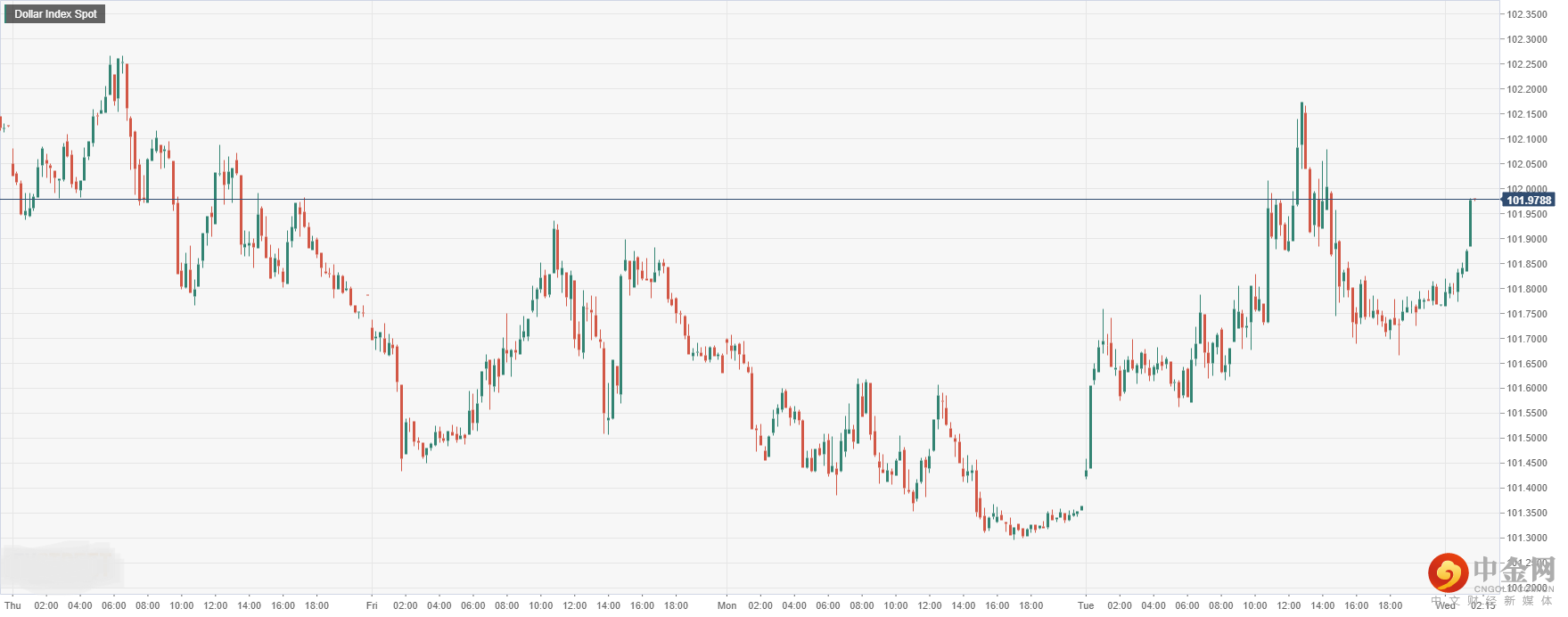 美元指数周二收盘大幅冲高回落后,今日开盘上涨0.35%至101.97附近,因美债收益率升高,伴随全球通胀进一步加速担忧,使得美元上行支撑提振。