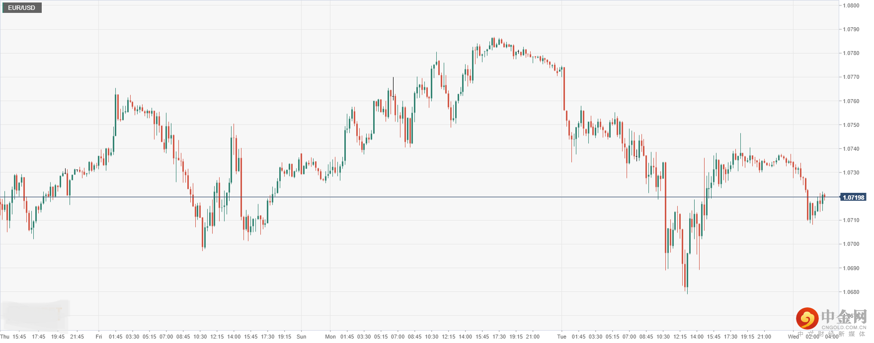 欧元兑美元周二收盘小幅震荡后,今日开盘跌至1.0719,由于欧元区5月通胀触及纪录高位,导致欧元下行承压。