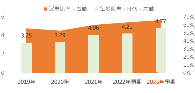 图二:2019-23年每股派息CAGR料达10%,派息比率料逐步增至70%