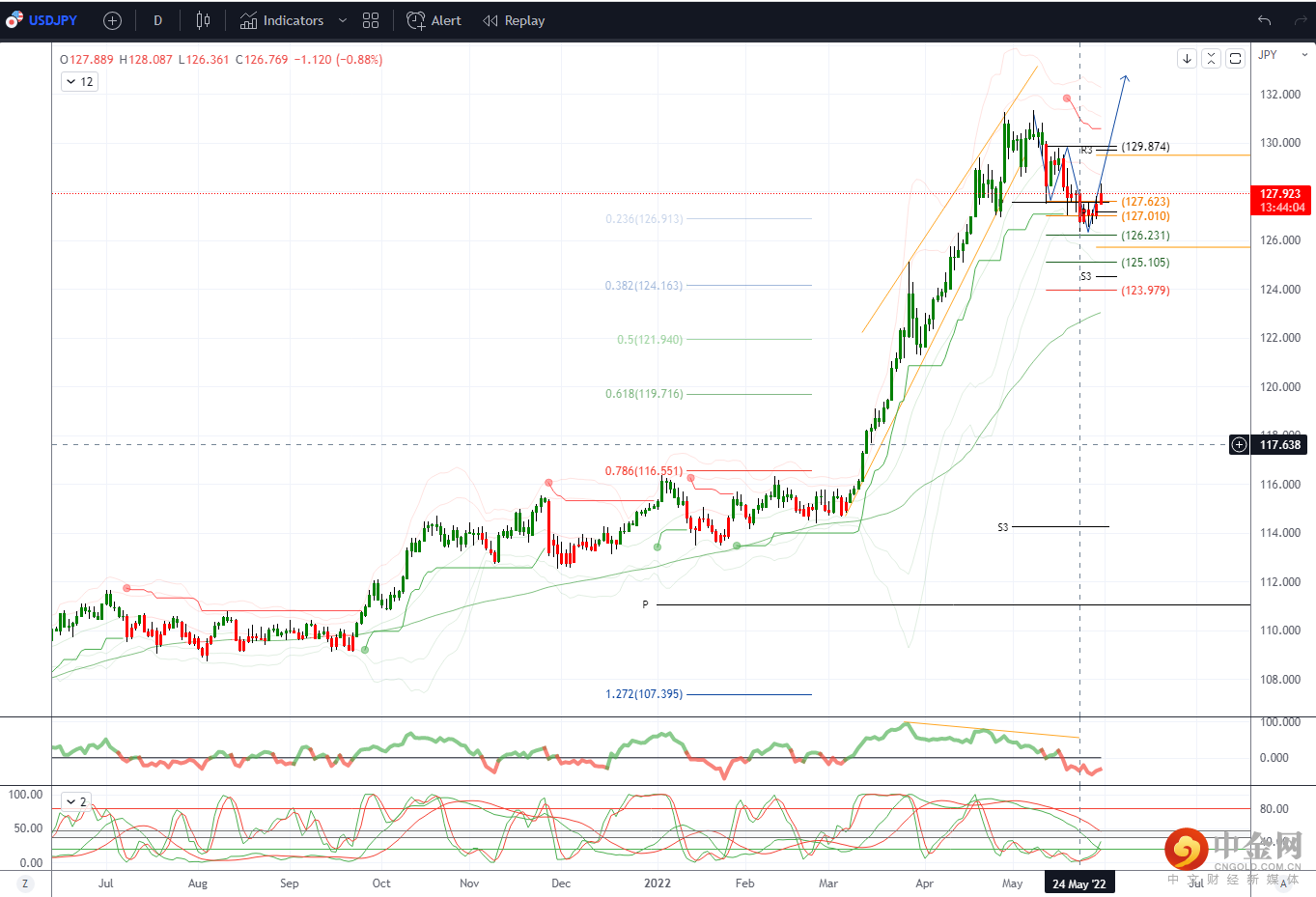 USDJPY 日内偏差:127上方看涨,下方看跌