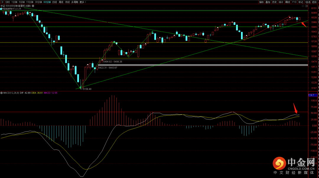 中证500已经开始酝酿调整段落,注意上方6068点压制,在没有放量突破的前提下大概率会出现冲高回落走势。下方则需要观察5950点支撑,如果跌破就有可能向下回探5800附近的平台支撑。