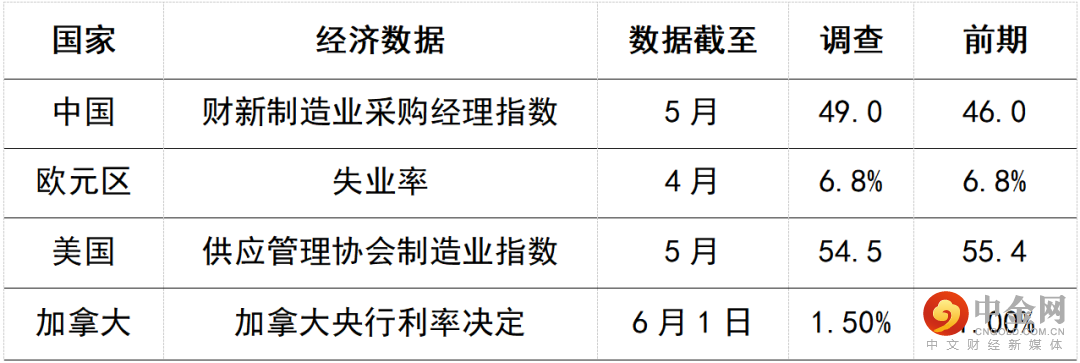 中国5月份官方采购经理指数回升,表现超出市场预期,但制造业和服务业指数仍处于收缩区间(低于50),反映供应链和内需有轻微改善。