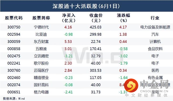 亿元。东方财富、宁德时代、五粮液净买入额位列前三,分别获净买入