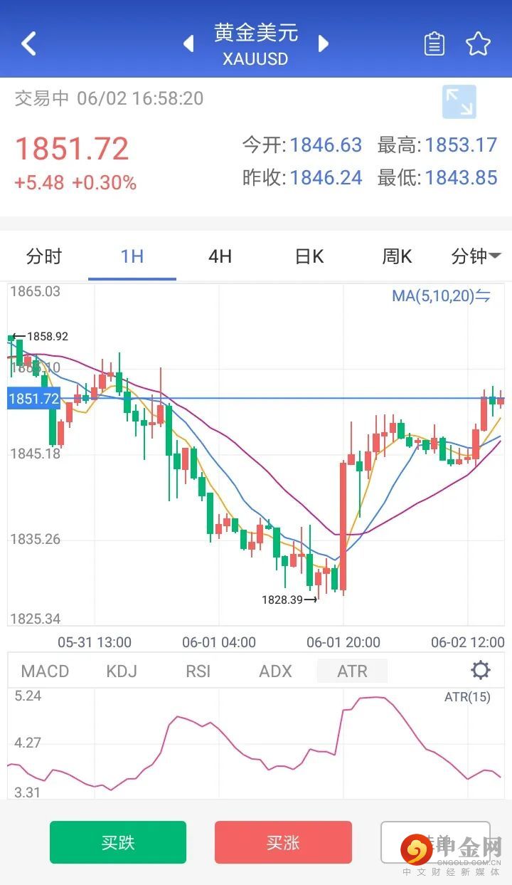 周三现货黄金先跌后涨,盘中一度下破1830美元关口,美盘前短线拉升,较日低拉涨逾20美元,随后有所回落,最终收涨0.51%,报1846.24美元/盎司。本交易日,国际金价延续隔夜反弹势头,因美元回落降低了非美元持有者的购金成本。不过,由于市场缺乏新的炒作题材,金价近期料维持在1850美元附近、宽近40美元区间内的震荡格局。从今日周四起,非农周的大戏逐步拉开,今晚ADP、初请失业金数据先于非农亮相,在众多数据公布前,市场观望情绪浓厚。