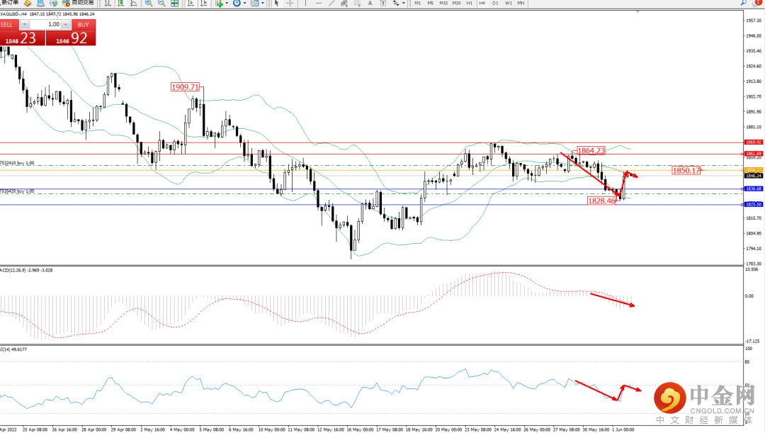 [现货黄金1h图]