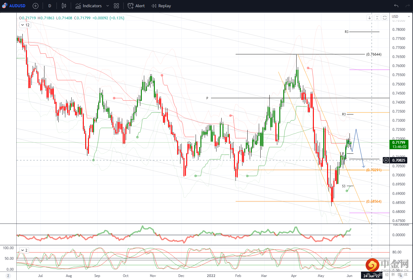 支撑0.7130-35、0.7090-0.7100,阻力0.7190-95、0.7225-30