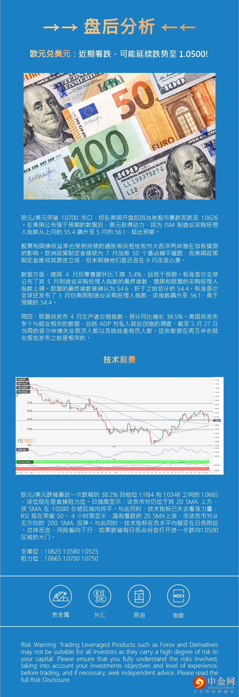 欧元兑美元近期看跌,可能延续跌势至 1.0500!