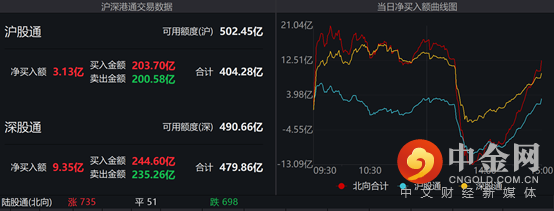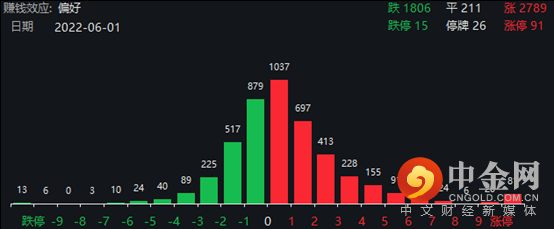 截至昨日收盘,两市共2789只个股上涨,91只个股涨停,1806只个股下跌,15只个股跌停,以每日额度余额口径,北向资金截至A股收盘净流入近47亿元;以买卖成交额口径,北向资金净买入逾12亿元。