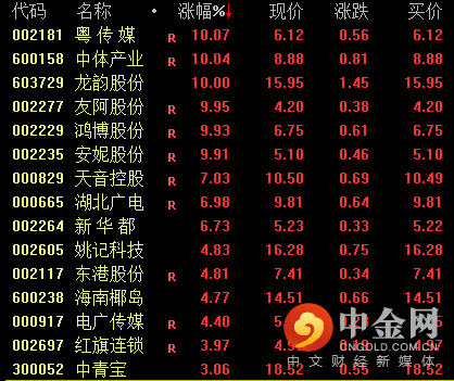 其中中成更是十连板。