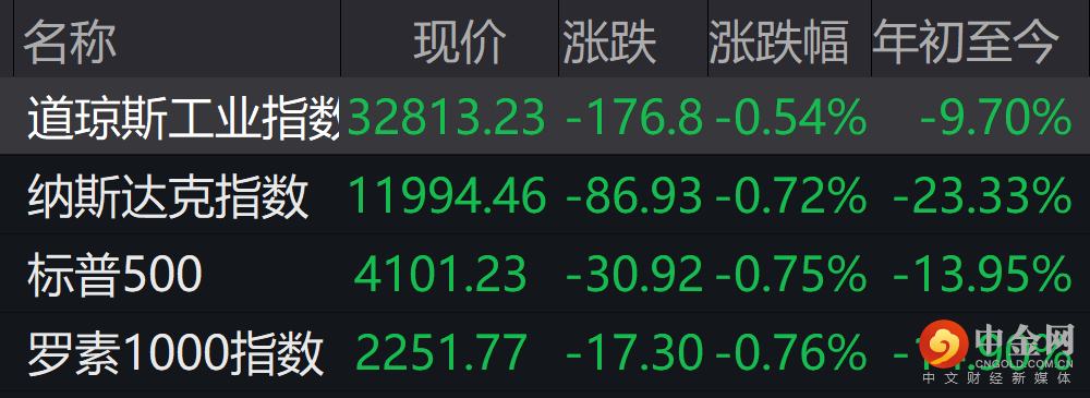 美股三大指数震荡收跌,道指跌0.54%,纳指跌0.72%,标普跌0.75%;热门中概股多数下跌,贝壳跌超5%,新东方跌超3%,网易、阿里巴巴、拼多多、知乎均跌超2%。