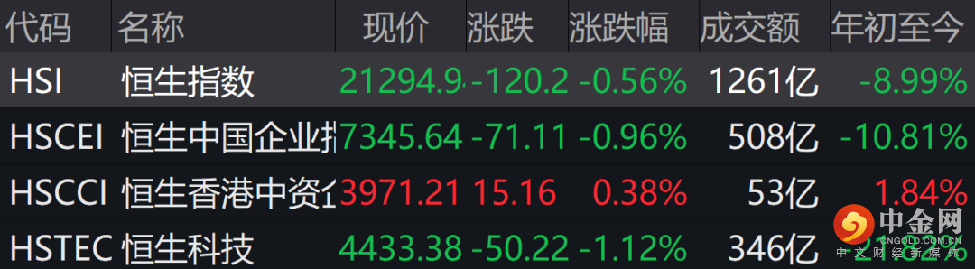 香港恒生指数收跌0.56%,恒生科技指数跌1.12%,医药股下跌,君实生物跌超14%。汽车股走高,永达汽车涨超8%。贝壳涨超13%。