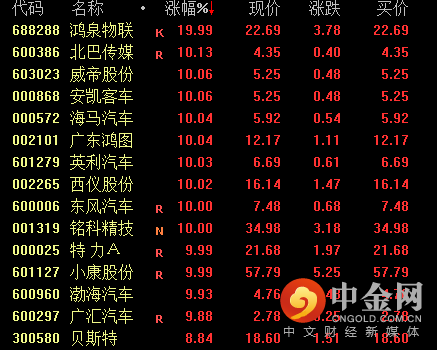 汽车板块昨日延续强势表现,截至收盘,安凯客车、海马客车、广东鸿图、英利汽车等个股均涨停,此前已经涨超200%的中通客车涨幅高达6%。