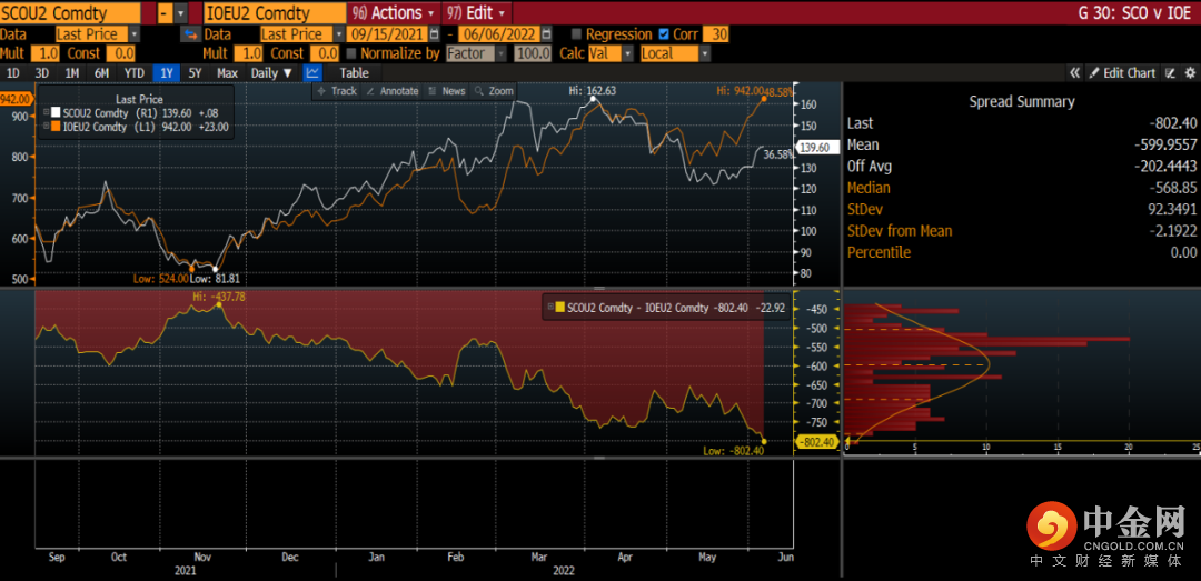 DCE大商所铁矿09月/22年 - SGX新交所铁矿09月/22年