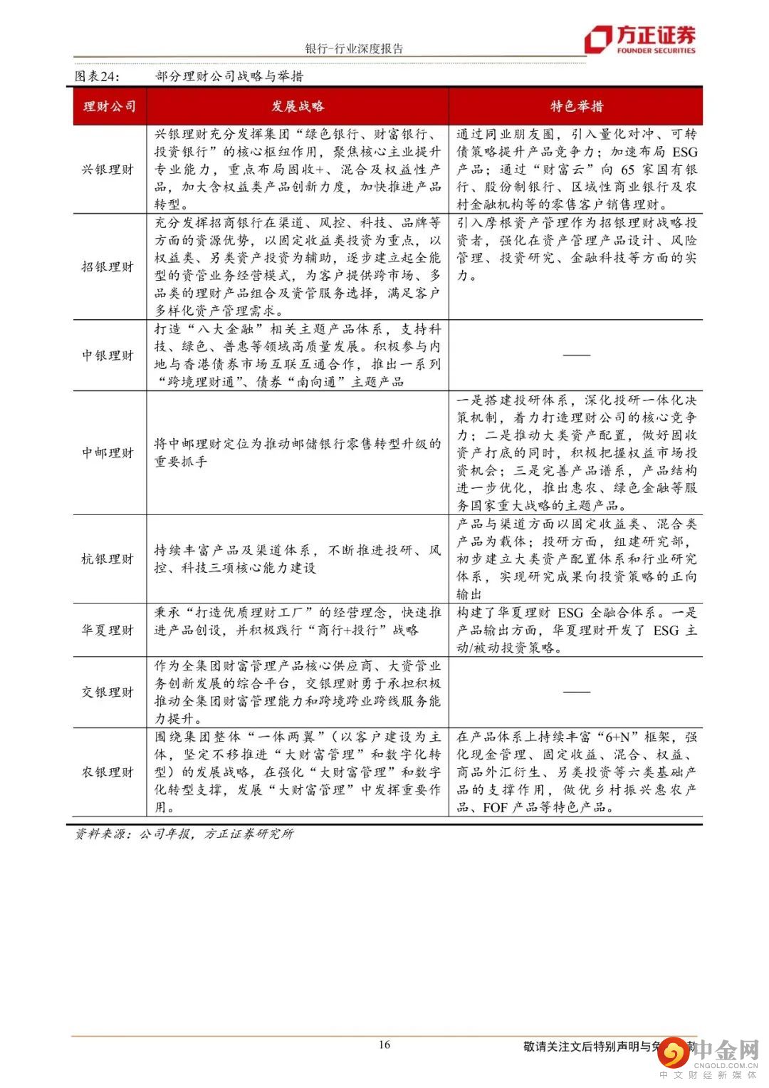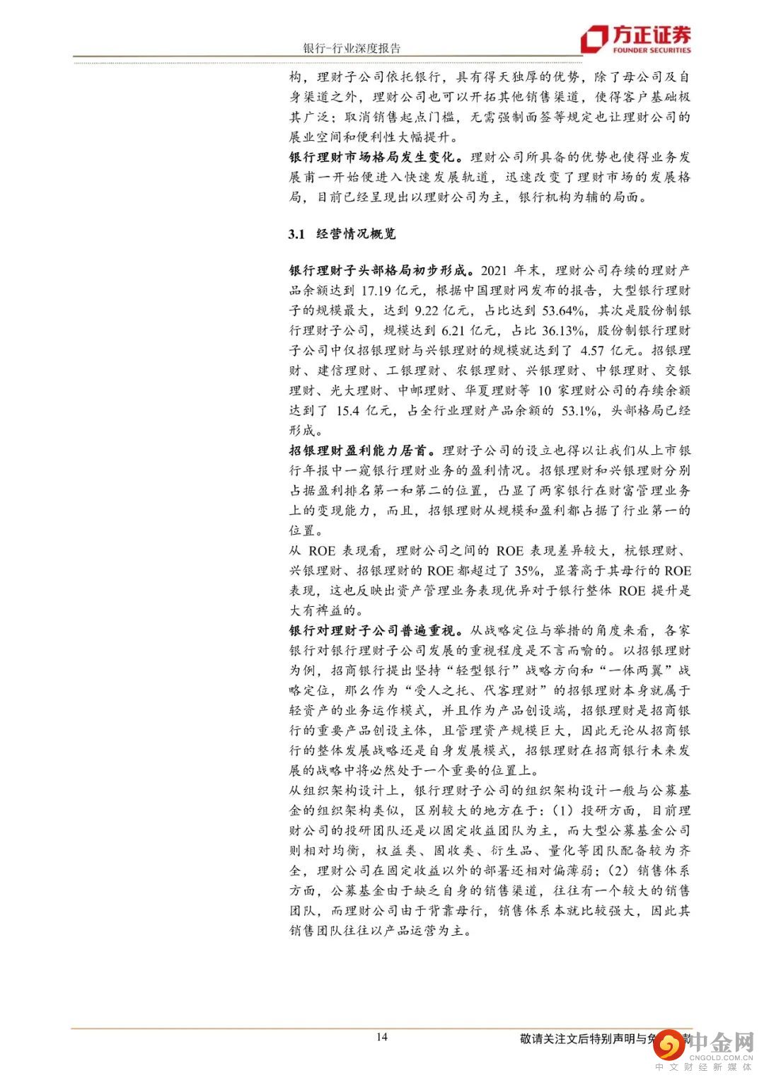 投资建议:财富管理大潮下,财富管理机构之间的竞争在于看的清,执行的坚决与彻底,银行理财子作为已经崛起的一股势力,未来还有着广阔的发展空间。招银理财无论是理财产品规模还是盈利能力已经走在理财子公司的前列。招商银行坚持“一体两翼”战略定位,围绕“领先的零售银行、专业的公司银行、开放的同业银行”的定位,着力推动“一体两翼”全面融合,完善一体化经营机制,形成各方协同的飞轮效应。银行理财子公司作为其重要的产品供给主体,未来将成为招商银行贯彻零售银行战略的重要抓手。综上,我们建议重点关注招商银行。