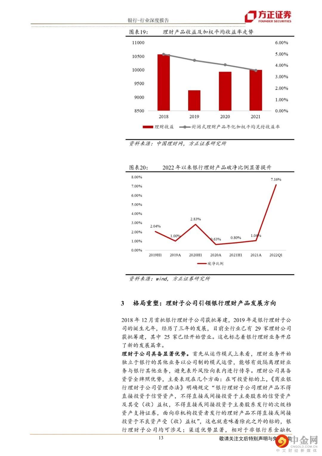 理财子公司引领银行理财产品发展方向。从银行理财产品存续余额上看招银理财、建信理财、工银理财等10家理财公司的存续余额达到了15.4亿元,占全行业理财产品余额的53.1%,头部格局已经形成。从产品的角度来看固收类产品在银行理财子的产品体系中仍占据统治地位,头部的理财公司在产品多样化方面已经开始发力。