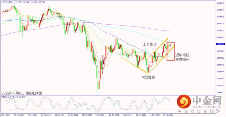 日级别线图,近期出现上升矩形,短中均线多方排列,可能延续涨势。