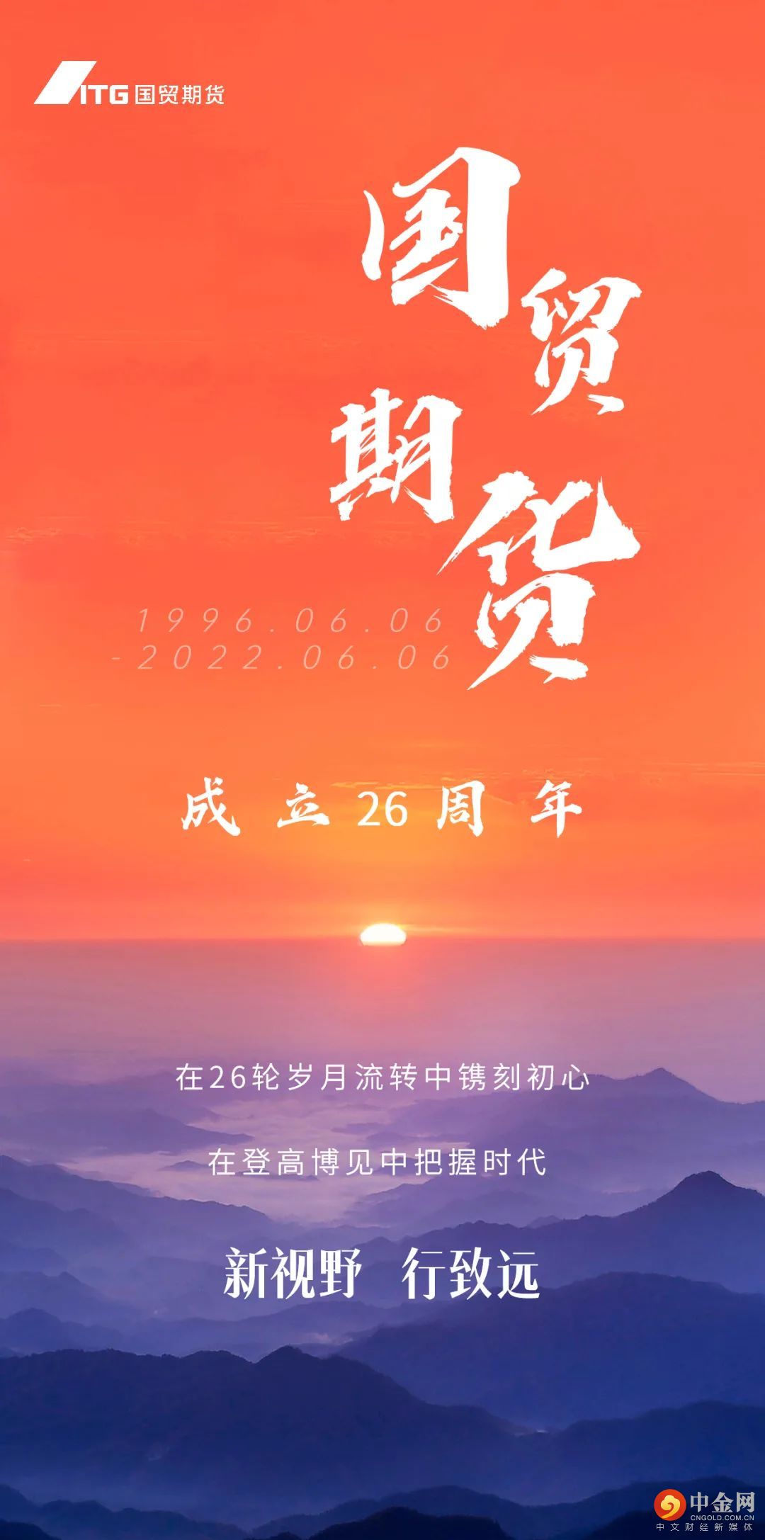 伴随中国期货业的发展脚步,国贸期货已与期货市场度过26个春秋,这是紧跟时代脉搏、勇立发展潮头的26年。我们深耕市场,与时俱进,始终牢记服务实体经济的根本宗旨,与客户共同成长,持续创造新价值!
