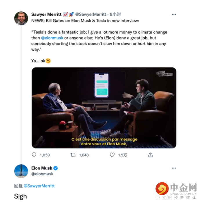 日前,微软公司联合创始人比尔·盖茨在接受最新采访时回应了做空特斯拉一事,称他在气候变化上的投入比特斯拉CEO马斯克或其他任何人都多,而且做空也没有伤害到马斯克。马斯克随后在报道盖茨这一采访的推文下用叹气回应道:“唉!”