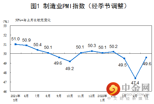 5月份,制造业采购经理指数(PMI)为49.6%,虽低于临界点,但比上月上升2.2个百分点,制造业总体景气水平有所改善。