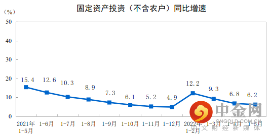 1—5月份,全国固定资产投资(不含农户)205964亿元,同比增长6.2%。其中,民间固定资产投资117128亿元,同比增长4.1%。从环比看,5月份固定资产投资(不含农户)增长0.72%。