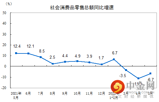 1—5月份,社会消费品零售总额171689亿元,同比下降1.5%。5月份,社会消费品零售总额33547亿元,同比下降6.7%。