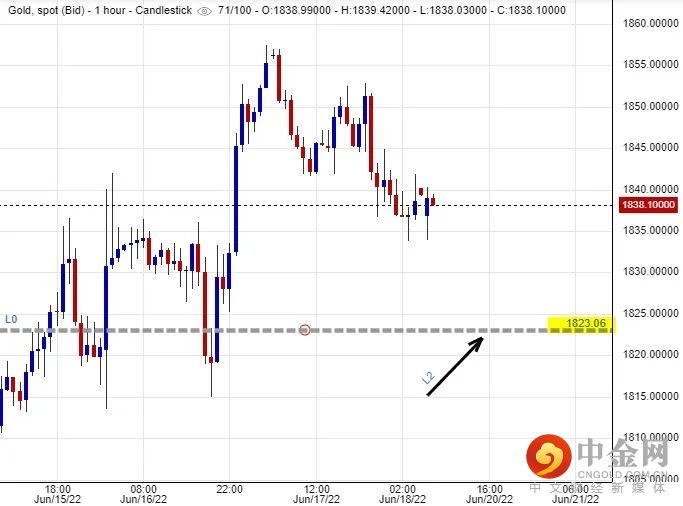 可以部署在$1,823美元左右建立好仓盘,短线看高金价一线至$1,855美元水平后止赚,止损在$1,815美元。