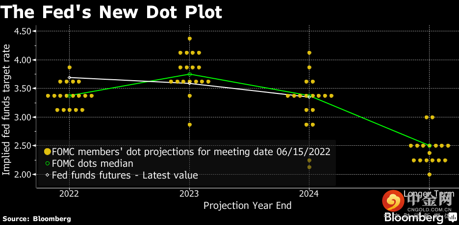 点阵图显示,官员们预计,到12月利率将升至3.4%,到2023年底将升至3.8%,这将是自2008年初美国经济处于金融危机风口浪尖以来的最高水平。经济学家表示,如此急剧的增长可能引发经济衰退。