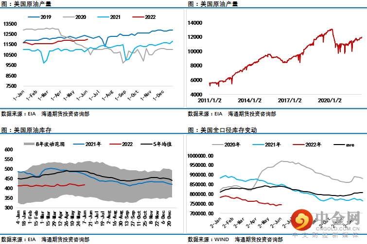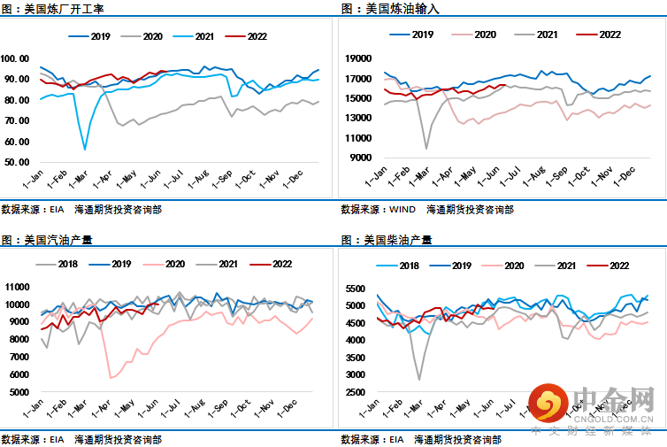 EIA报告显示,美国原油产量达1200万桶/日,为2020年4月以来首次。除却战略储备的商业原油库存增加195.6万桶至4.187亿桶,增加0.5%。除却战略储备的商业原油上周进口698.5万桶/日,较前一周增加83.1万桶/日,为2022年1月28日当周以来最高。本周美国白宫今天就炼油厂产能召开紧急会议,试图找到降低汽油价格的方法,美国已经在每周释放大约700万桶石油,即便如此整个油品市场库存仍然显示供应吃紧,美国油品全口径库存处在远低于往年同期更为直接的显示了目前石油市场供应紧张的改善绝非短期内能改善的难题。