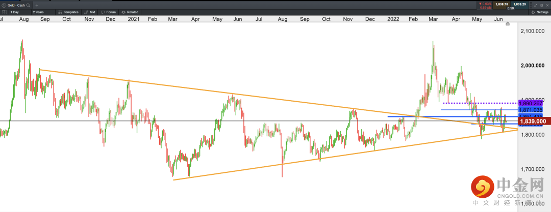 现货黄金周五收跌0.94,报1839.69美元/盎司。白银跌1.31%,报21.67美元/盎司。
