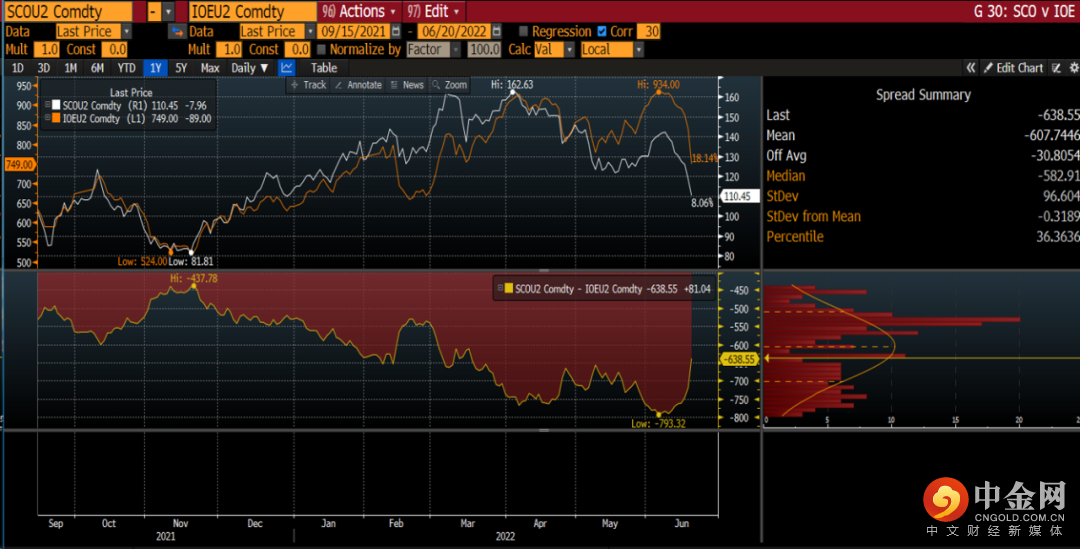 DCE大商所铁矿09月/22年 - SGX新交所铁矿09月/22年