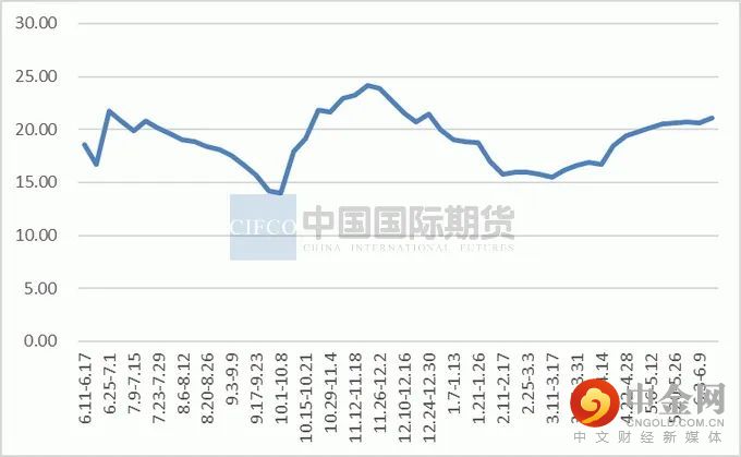 上周主力合约震荡上涨。主力09合约最高价出现在周五19650,最低价出现在周一19000。