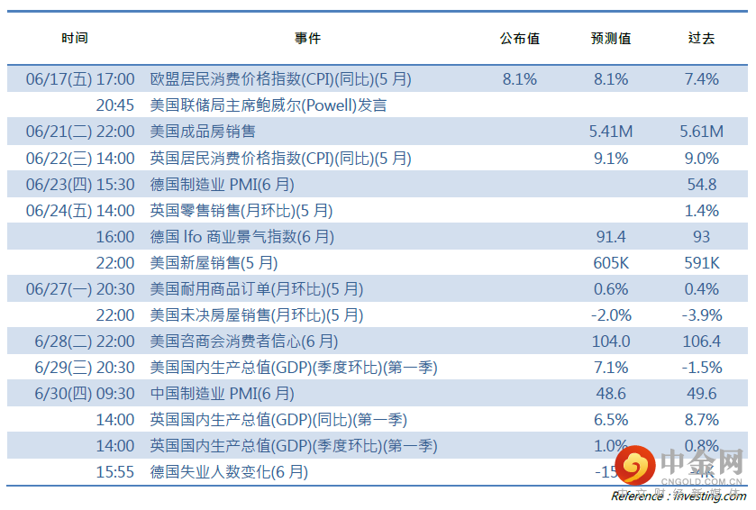 美联储宣布加息75个基点,这是美联储自1994年以来最大加息幅度。美联储主席鲍威尔在会后记者会中表示:“我不认为这种升息幅度会成为常态,下一次会议的加息幅度很可能不是50就是75基点。我们会在每次会议上视具体情况做决定。”鲍威尔可能维持其鹰派立场,以对抗通胀,这可能令金价本周上行空间受限。