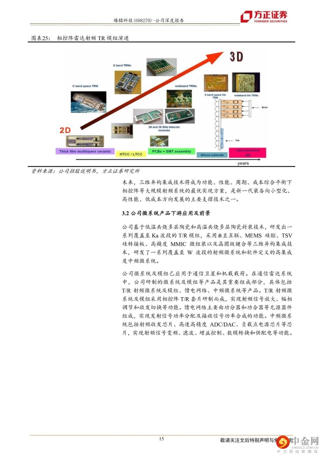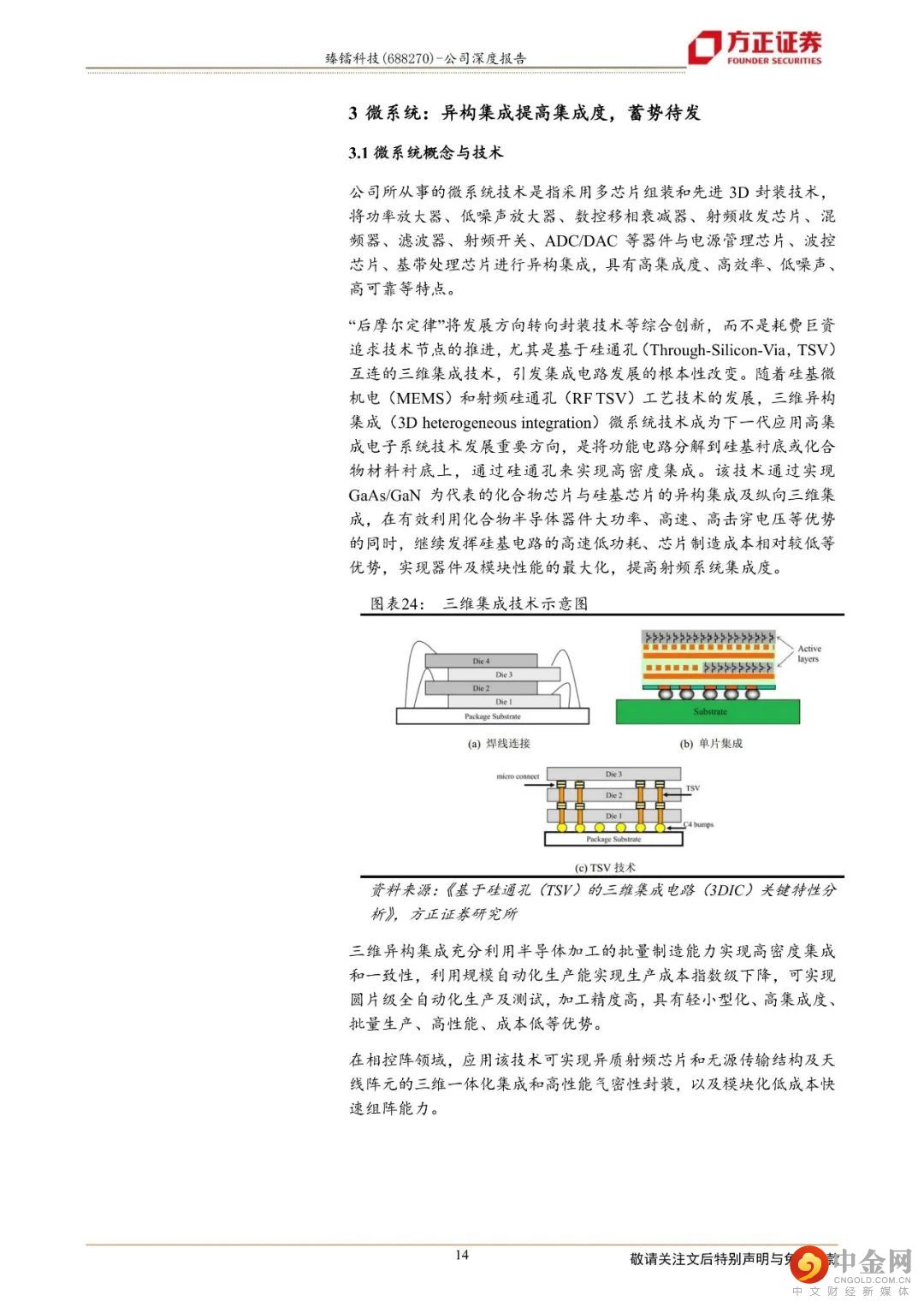 公司的微系统产品相较于传统产品,通过多层内嵌芯片的三维堆叠极大地提高了功能集成度、产品重量大幅缩减至传统TR组件的10%以内,并通过具有高一致性的半导体晶圆级量产加工使成本缩减至原先的30%,满足了新一代装备向小型化、高性能、低成本方向发展的需求,具有较好的应用前景,蓄势待发。