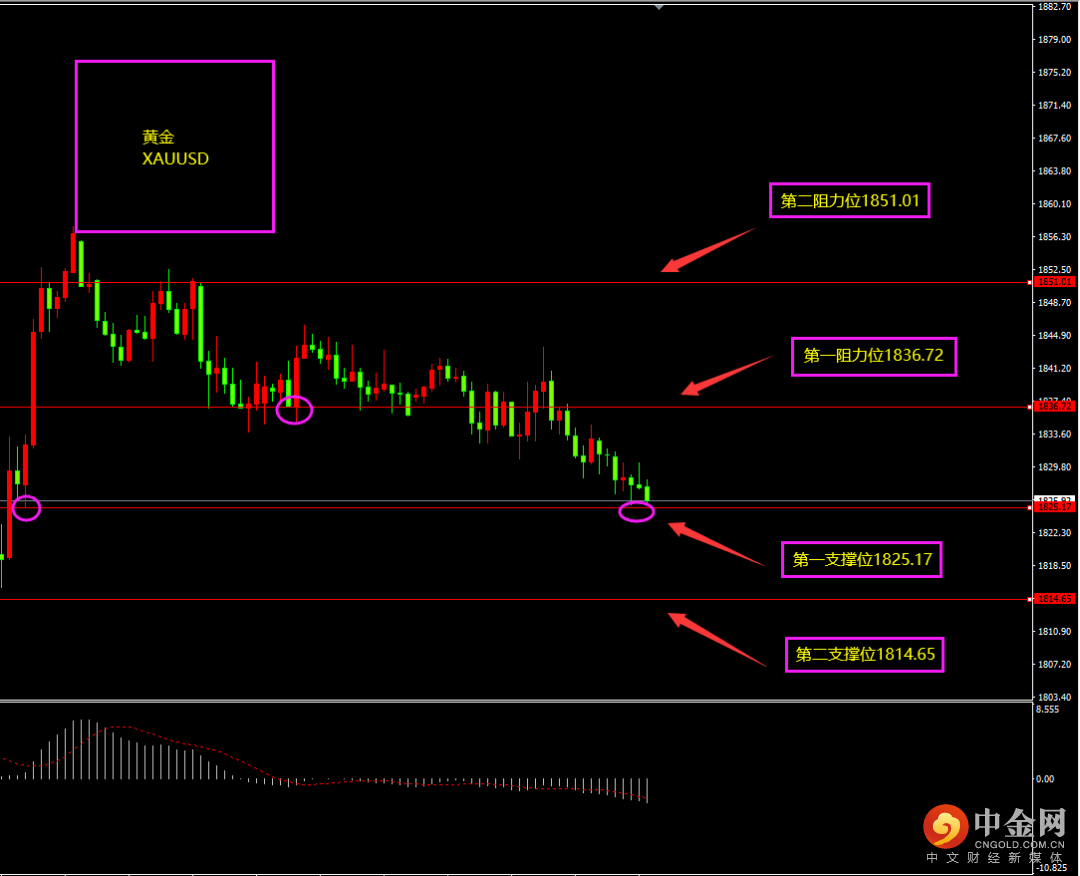 天图黄金收小阴线,价格小幅回落,但实体部分较小,且MACD并未大幅回落,空头并非强势,目前大方向仍保持看涨,日内更多以逢低看多为主。小时图黄金期间连续阴线回落,MACD虽有回落但并未大幅下滑,空头不强,但底部未形成大阳线筑底,多头不强,日内更多以逢低看多为主。(大阳线不出,多单不入)