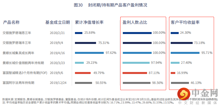 同样呈现出相同的特点,因为有持有期的限制,盈利人数占比及客户平均收益率,均达到较高水平。