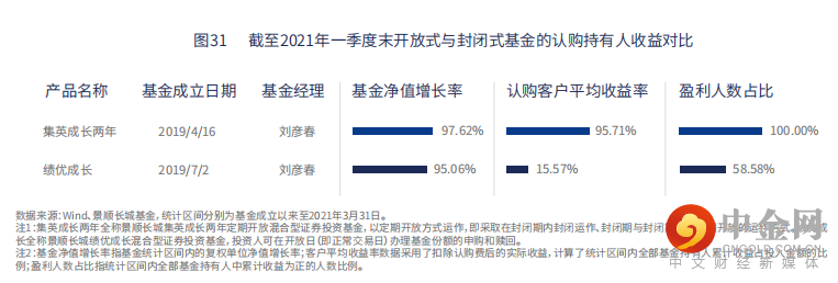 有两年持有期限制的“集英成长两年”和没有持有期限制的“绩优成长”,在基金净值增长率相差无几,分别为97.62%、95.06%。但是两只基金认购客户的收益情况却相差甚远。