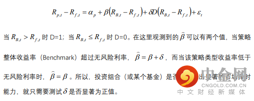 该指标是在简单的线性回归模型基础上(CAPM),通过扩展二阶项(凸性)来判断基金是否具备择时能力。当然,这里的择时能力指标值,也分成获取超额收益的择时能力,和实现过度跌损的择时操作。