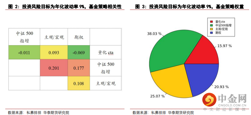 注意,500指增和量化CTA的板块权重,以及策略板块内的基金相对权重在不同投资风险目标下实际上都有显著变化,但是,在策略大类这个层面上,它们之间的相关性在投资组合有效前沿上一直保持极低水平。