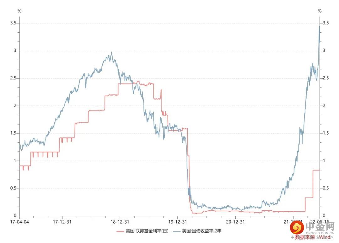 高企的通胀对经济增长和就业信心方面产生不利影响。经济预期方面,美联储将2022年实际GDP增速预期从2.8%下调至1.7%,失业率预期从3.5%上调至3.7%,预测2024年失业率将抬升至4.1%。这一切指向美国经济下行风险加剧,后续衰退压力上升。