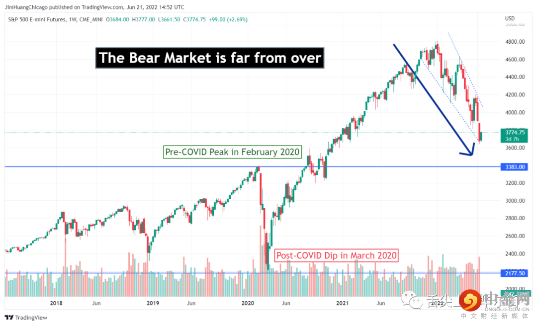 在最近的大幅下跌之后,标准普尔指数仍比新冠流行之前的峰值高出400点。在我看来,这个疫前峰值是标普的第一条价格支撑线。如果经济衰退恐惧成为现实,那么新冠后的新低将成为第二个支撑位。
