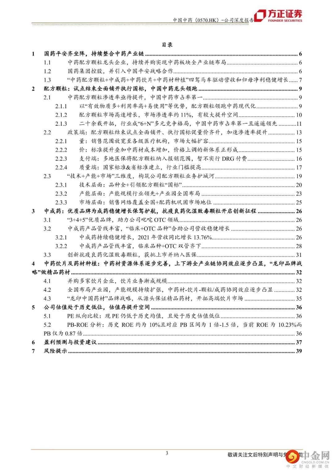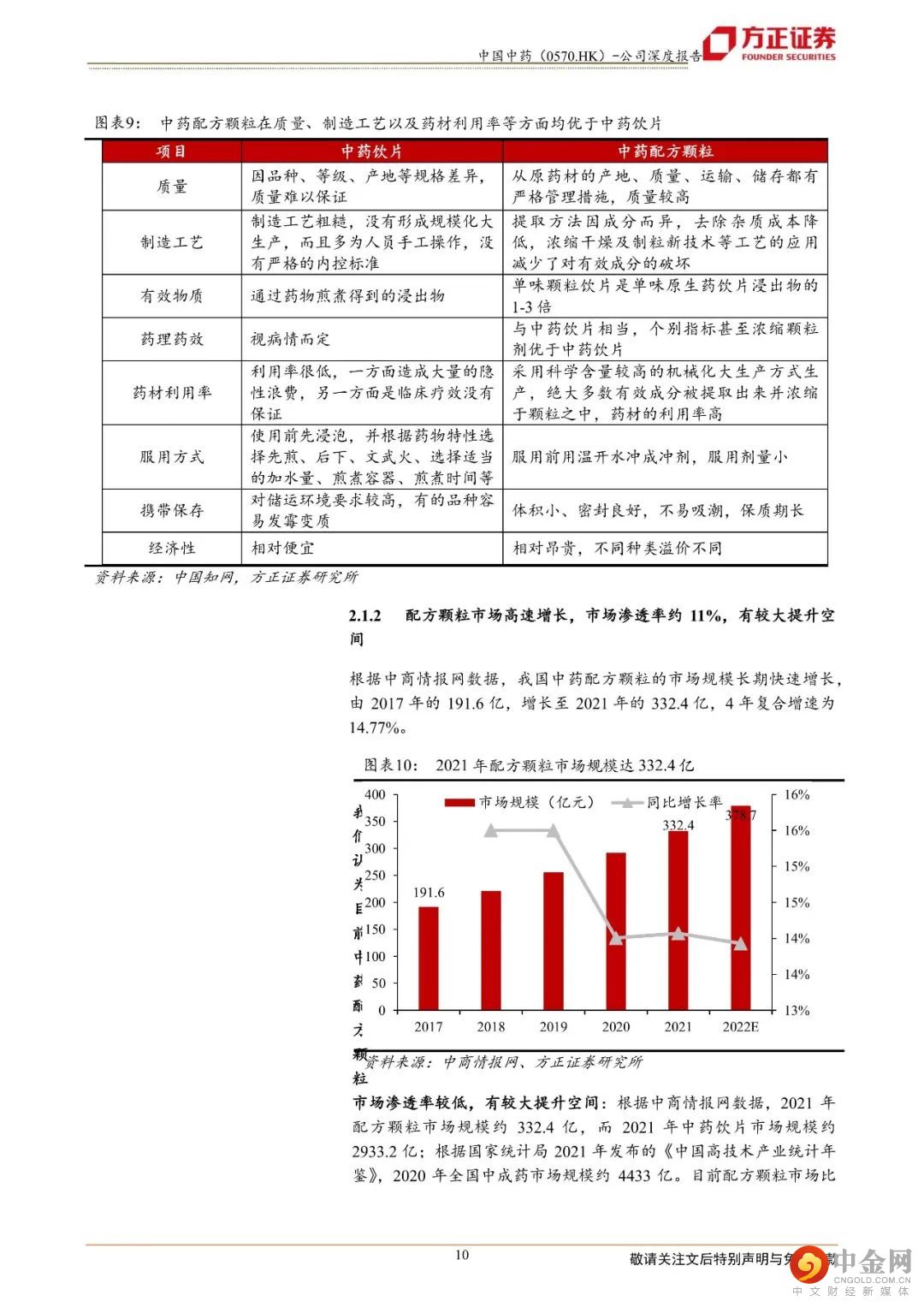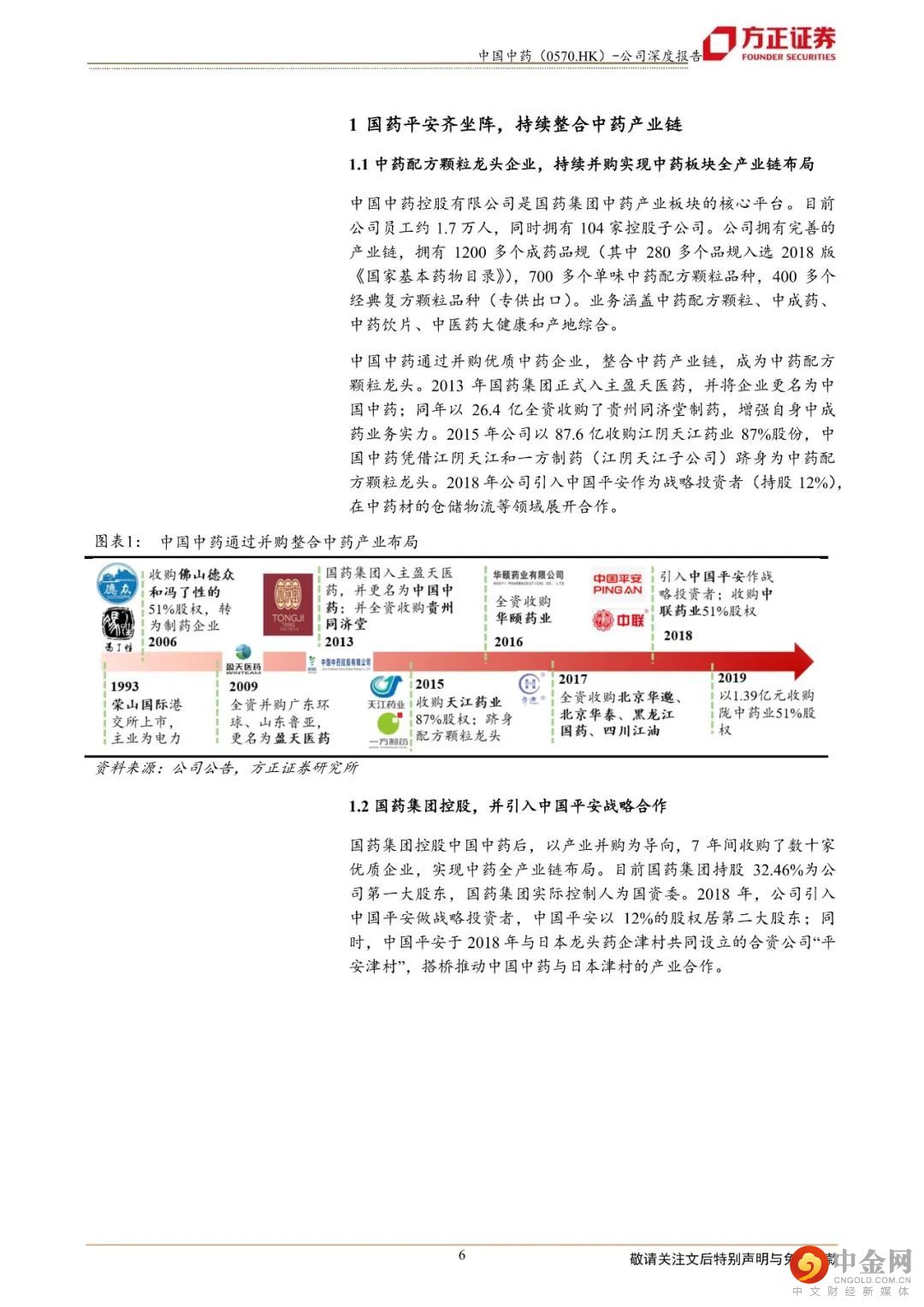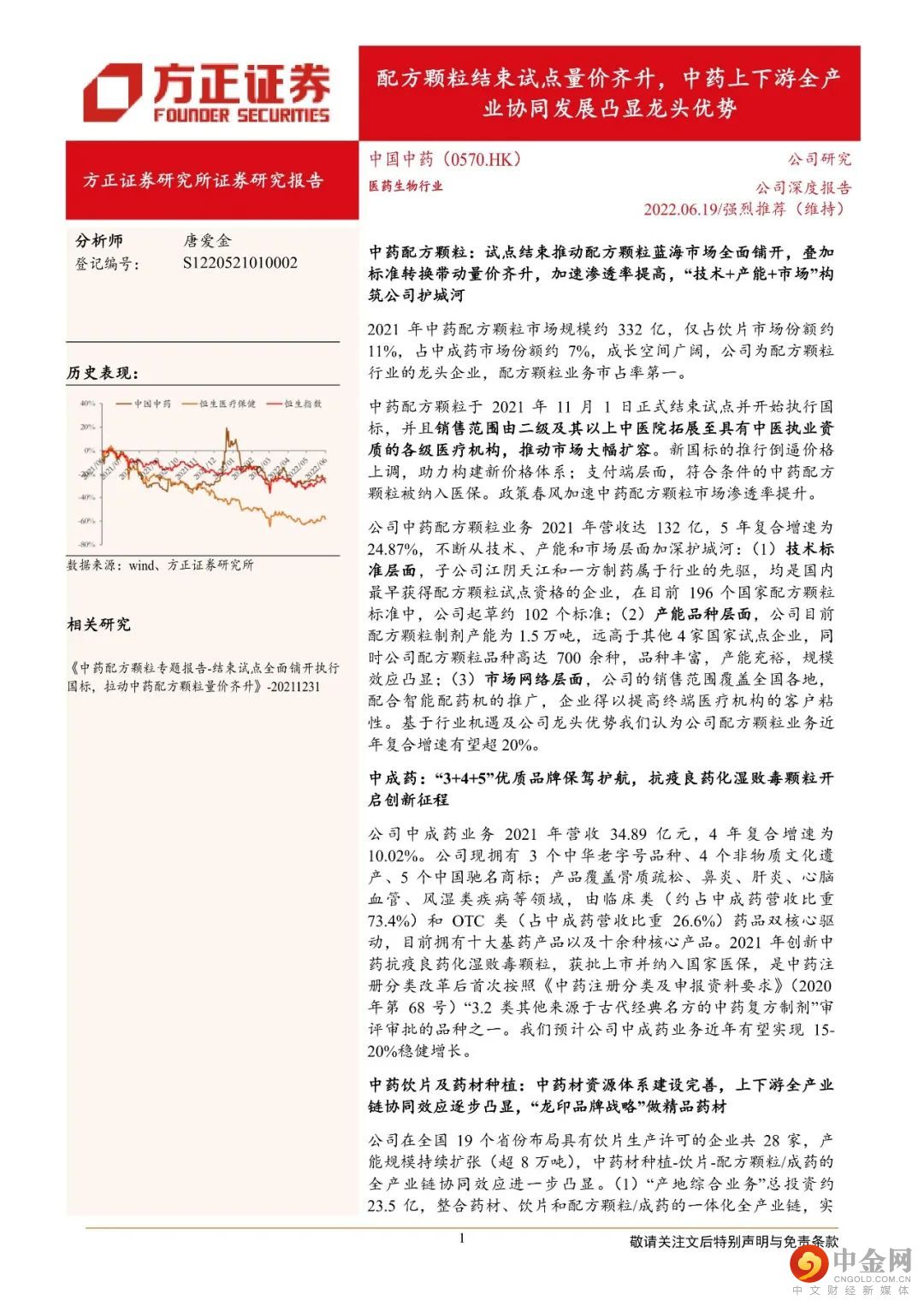 风险提示:配方颗粒加成取消;配方颗粒及饮片集采风险;医保资质取消风险;地区保护政策风险;中药材价格波动;市场竞争加剧风险;中国中药的第二大股东中国平安是方正证券的间接控股股东,本报告推荐标的中国中药与我司存在关联关系,我司已履行规定的披露义务,请投资者谨慎投资决策,并自行承担据此进行投资交易的所有后果。