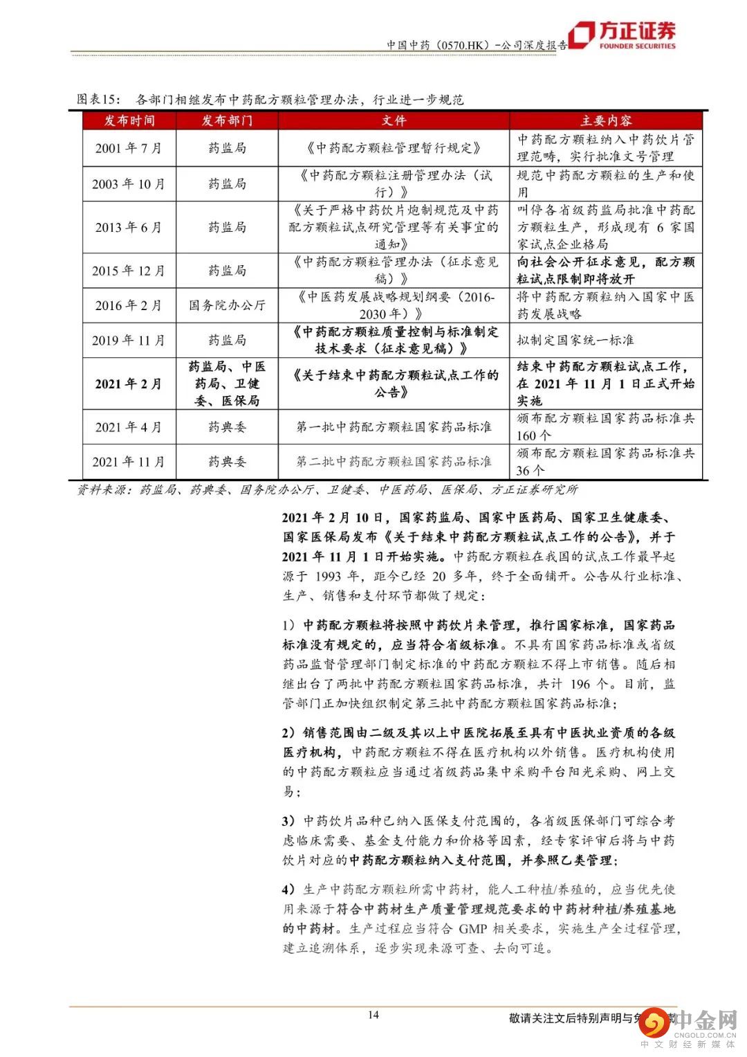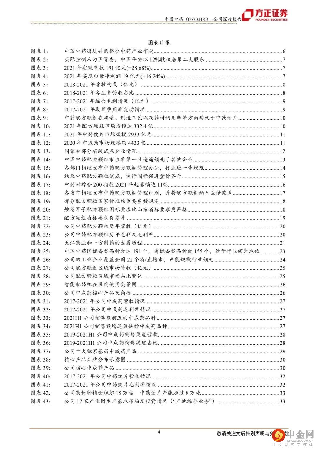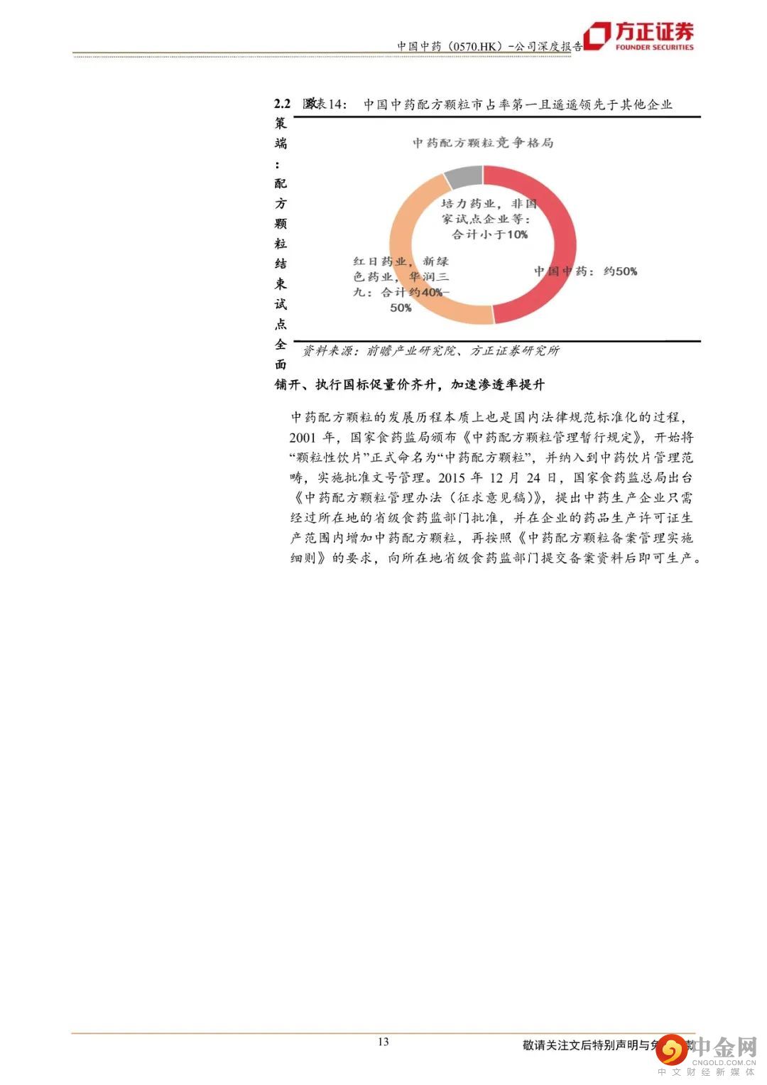 风险提示:配方颗粒加成取消;配方颗粒及饮片集采风险;医保资质取消风险;地区保护政策风险;中药材价格波动;市场竞争加剧风险;中国中药的第二大股东中国平安是方正证券的间接控股股东,本报告推荐标的中国中药与我司存在关联关系,我司已履行规定的披露义务,请投资者谨慎投资决策,并自行承担据此进行投资交易的所有后果。