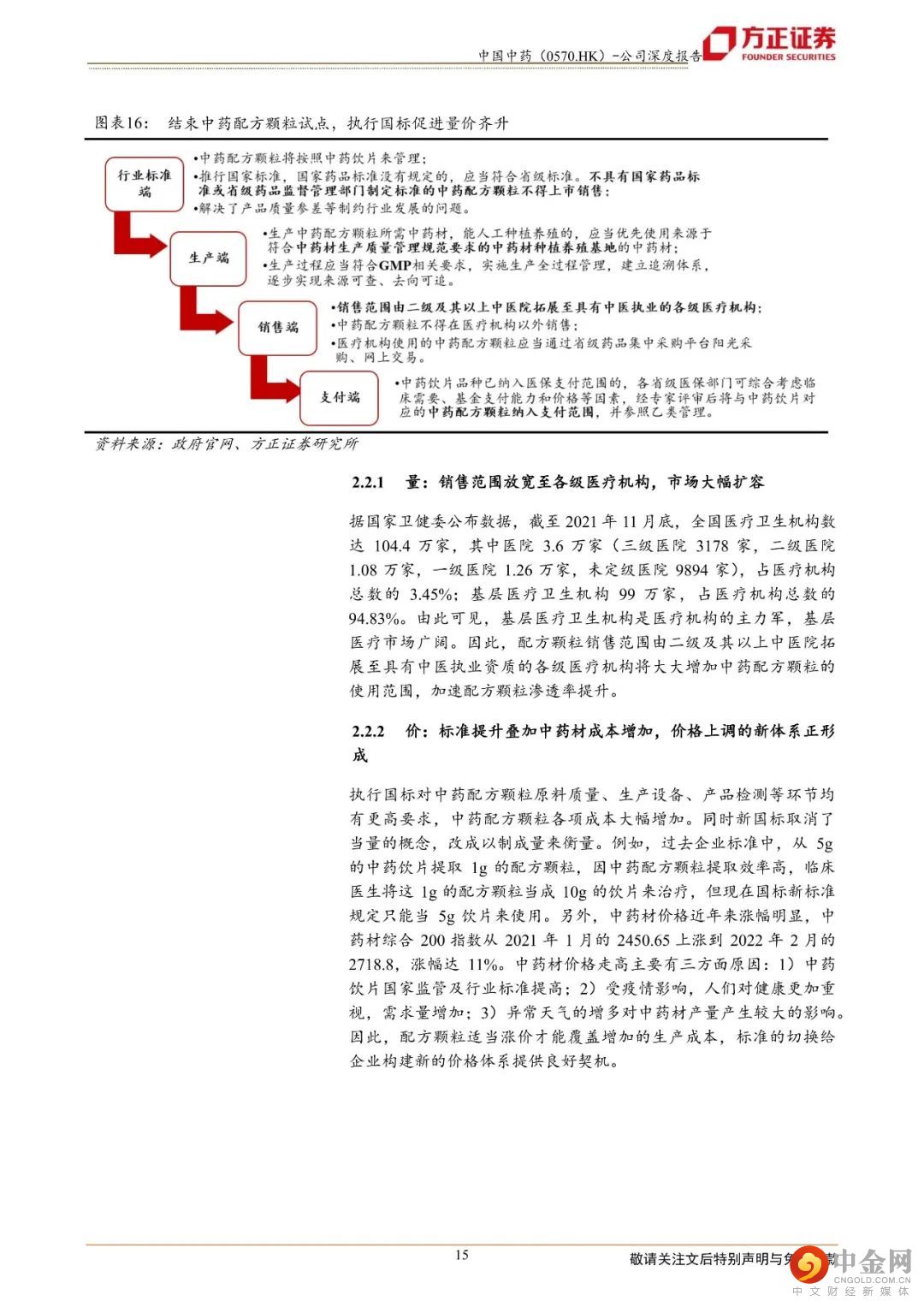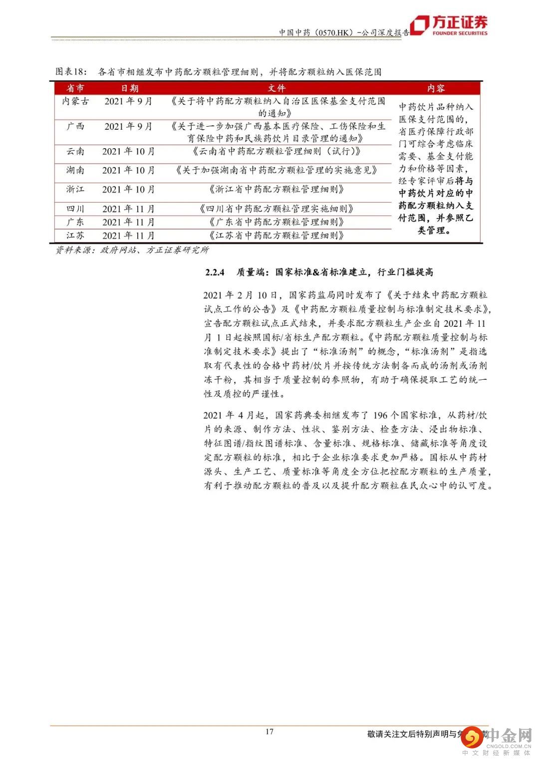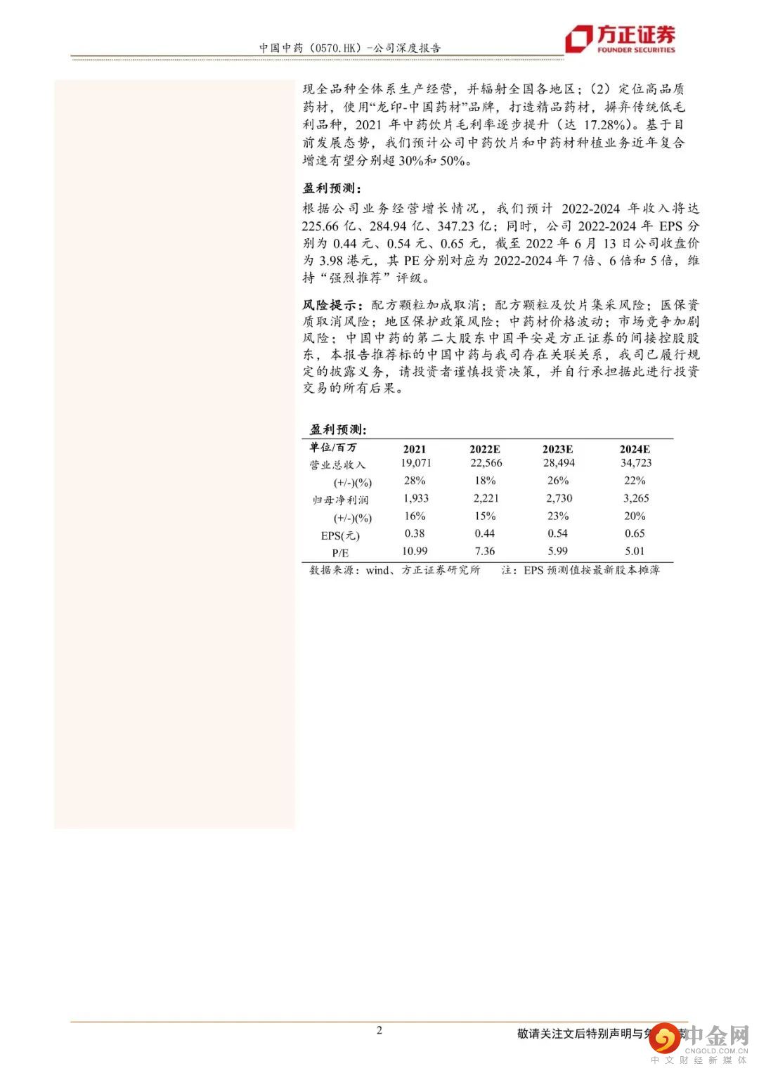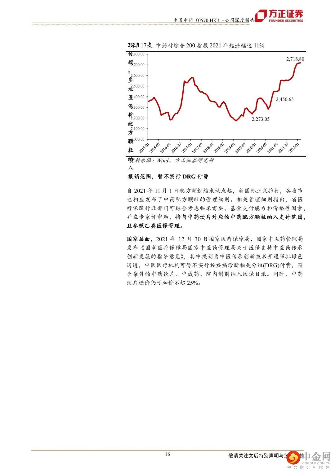 风险提示:配方颗粒加成取消;配方颗粒及饮片集采风险;医保资质取消风险;地区保护政策风险;中药材价格波动;市场竞争加剧风险;中国中药的第二大股东中国平安是方正证券的间接控股股东,本报告推荐标的中国中药与我司存在关联关系,我司已履行规定的披露义务,请投资者谨慎投资决策,并自行承担据此进行投资交易的所有后果。