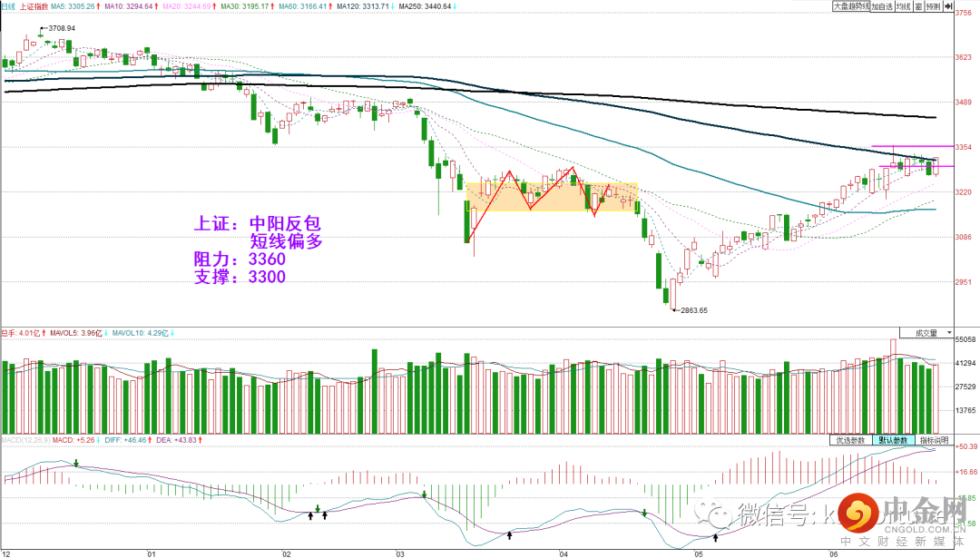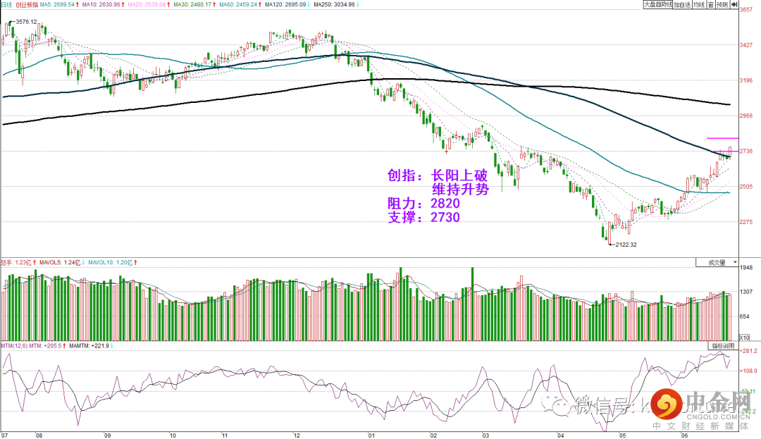 周三沪指收中阴,深成指和创指收小阴,短线有震荡分化迹象。但今日指数小幅高开,回调后重新止跌上涨。创指一度支撑市场情绪,午后大金融板块拉升提振沪指。今日三大指数均收长阳线,创指日图上破,和沪指携手站上半年线,市场继续维持多头方向。操作上可持股为主。