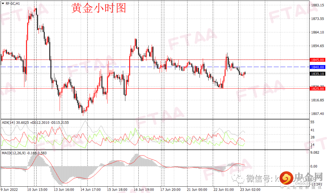 黄金期货周三宽幅震荡小涨,最低1824.85,最高1849.80,日图收出上下影小阳,显示短期多头主导,当前日图多空轮换,整体形态维持震荡。昨日亚盘金价延续调整,但欧盘时段一度拉升,美盘时段鲍威尔表示强调控制通胀以及美股反弹降低避险情绪,压制金价回落。小时图看1850或成短线阻力。今早亚盘金价维持弱势震荡。短线或维持调整。操作上可现价附近,或逢高在1840附近轻仓空,止损1845,目标1825。
