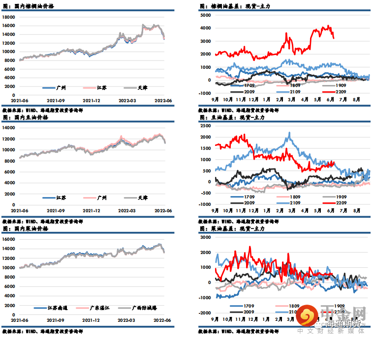 棕榈油主力收盘报9712元/吨,下跌348元,跌幅3.46%;豆油主力收盘报10372元/吨,下跌552元,跌幅5.05%;菜油主力收盘报12755元/吨,下跌451元,跌幅3.42%。9月豆棕差至660元。隔夜美豆价格下跌,小麦和玉米大幅下跌对大豆带来比价压力。NOAA发布的气象预报显示,美国部分产区可能出现高温干燥的天气,增加了市场对于作物关键生长阶段的担忧,制约美豆跌幅,关注美豆产区天气变化情况和6月底公布的种植意向报告,目前机构普遍下调美豆种植面积。棕榈油方面,棕榈油供需边际宽松令价格承压。一方面印尼加快棕榈油出口,进一步挤占马棕出口需求,截至周一,根据国内市场义务计划印尼已签发867,682吨棕榈油制品出口许可,此外政府已按照出口加速计划签发了535,998吨棕榈油制品许可,印尼已签发逾140万吨棕榈油出口许可。印尼经济事务协调部周二表示印尼将7月毛棕榈油参考价确定为每吨1,615.83美元,低于6月的每吨1,700.12美元。根据7月参考价,毛棕榈油出口专项税和出口税上限将分别为每吨200美元和288美元。另一方面,6月高频数据显示马棕供强需弱库存存在回升预期。SPPOMA数据显示,6月1-15日马来西亚棕榈油产量增加47.90%。船运机构数据显示,马来西亚6月1-20日棕榈油出口环比下滑10.5-17%。产地报价跌幅明显,国内进口利润改善,新增部分买船,后期国内供需紧张格局有望得到缓解,基差承压。近期宏观因素对油脂市场影响较大,叠加随着印尼出口的加速释放,马棕供需的改善,油脂价格将延续弱势
