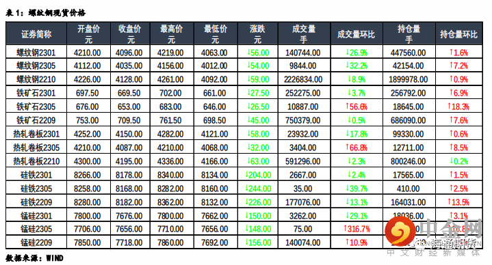 钢材:今日主力合约震荡走弱,上海螺纹下跌 40 元/吨至 4240 元/吨,上海热卷持稳于 4350 元/吨。螺纹 10 合约,永安期货买单持仓增加 2731 手,卖单持仓增加 6919 手;前二十名期货公司买单持仓增加 12607 手,卖单持仓增加 23455 手。钢联数据显示,6 月 21 日全国建材成交量合计 18.9 万吨、环比增加,高于上周的成交量均值 13.4 万吨。本期钢谷数据显示,全国建材产量环比大幅降低 32.25 万吨至 439.57 万吨,社库环比小幅降低 14.32万吨至 1103.98 万吨,厂库环比增加 11.65 万吨至 565.9 万吨,建材表观需求环比小幅 8.86 万吨至 442.24 万吨、大幅低于去年同期水平。从本期数据看,钢厂利润持续亏损导致钢厂主动减产已在数据层面体现,但当前社库去库不畅,成材库存压力仍在,基本面仍偏弱。美联储的强加息周期叠加成材实际需求未明显改善导致此轮盘面的较大跌幅,今日铁矿主力合约跌幅较大,致使成材盘面震荡走弱。短期来看,利润再度恶化导致钢厂主动减产范围不断扩大,需求端则持续低迷,单日建材成交及钢材表观消费量自低位继续走弱,房地产 1-5 月数据同样继续走弱,同时成材总体库存继续累库,因此当前成材基本面偏弱。关注后市成材需求的实际恢复情况以及原料端走势对成材的成本支撑力度。