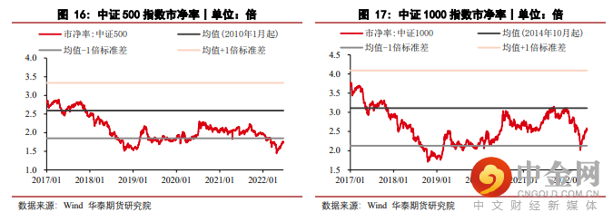 从估值的角度来看,当前中证1000、中证500指数的市盈率较低,处于一倍标准差区间下沿,上证50、沪深300指数的市盈率回升至2010年起的均值附近。中证1000指数的市净率处于较低位置,与上证50、沪深300指数类似,仅有中证500指数的市盈率仍低于一倍标准差区间。