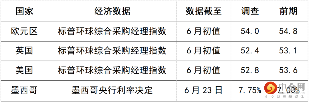 美国标普环球综合采购经理指数预期将显示制造业活动增长进一步放缓;而在消费开支重新平衡下,服务业应可保持强势。上述两个行业均可能在6月份继续扩张。
