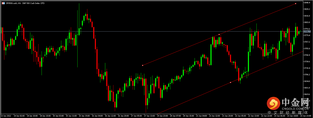 技术形态方面,标普500指数(SPX500)自周一(6月20日)开始就出现回温,从3,658点附近逐步拉升至3,802点,符合本刊于6月22日发表的《AETOS每日汇评》中的预测: